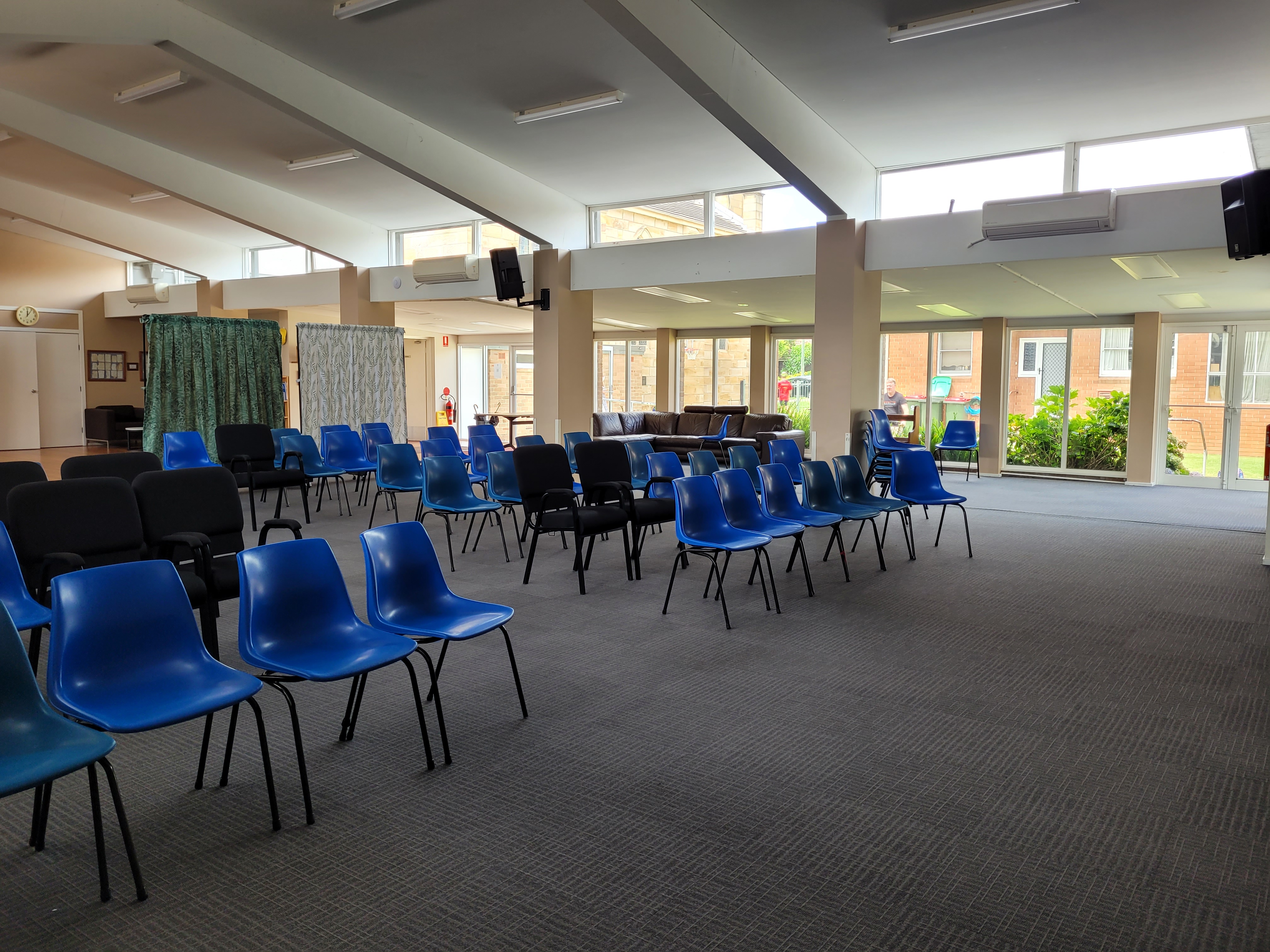 Looking to hire a hall in Wentworthville? Our modern hall is available for casual party hire or weekly hire to community groups. It is carpeted, with some areas of polished wooden floor, and is suitable for dance and fitness classes, functions, seminars and conferences. It can accommodate up to 130 people in theatre style, or 120 for dining.