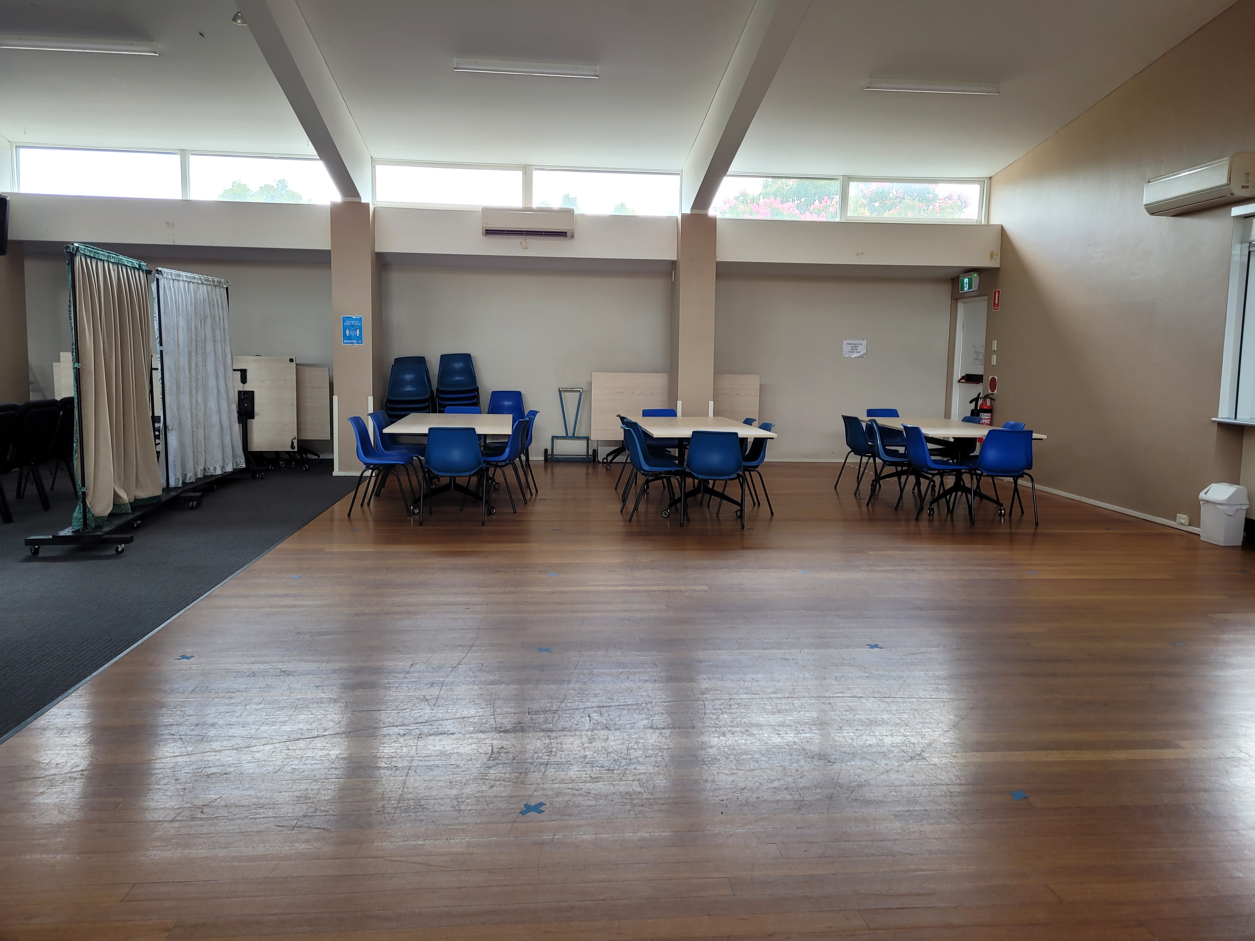 Large Hall, Small hall, Kitchen, Toilets, Sound System, Reverse-cycle Airconditioning.