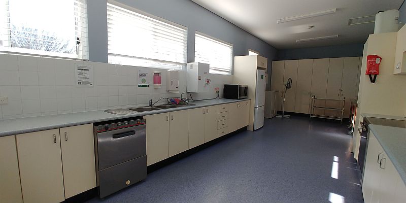 Kitchen - includes domestic oven, pie warmer, microwave, commercial dishwasher, zip instant hot water.